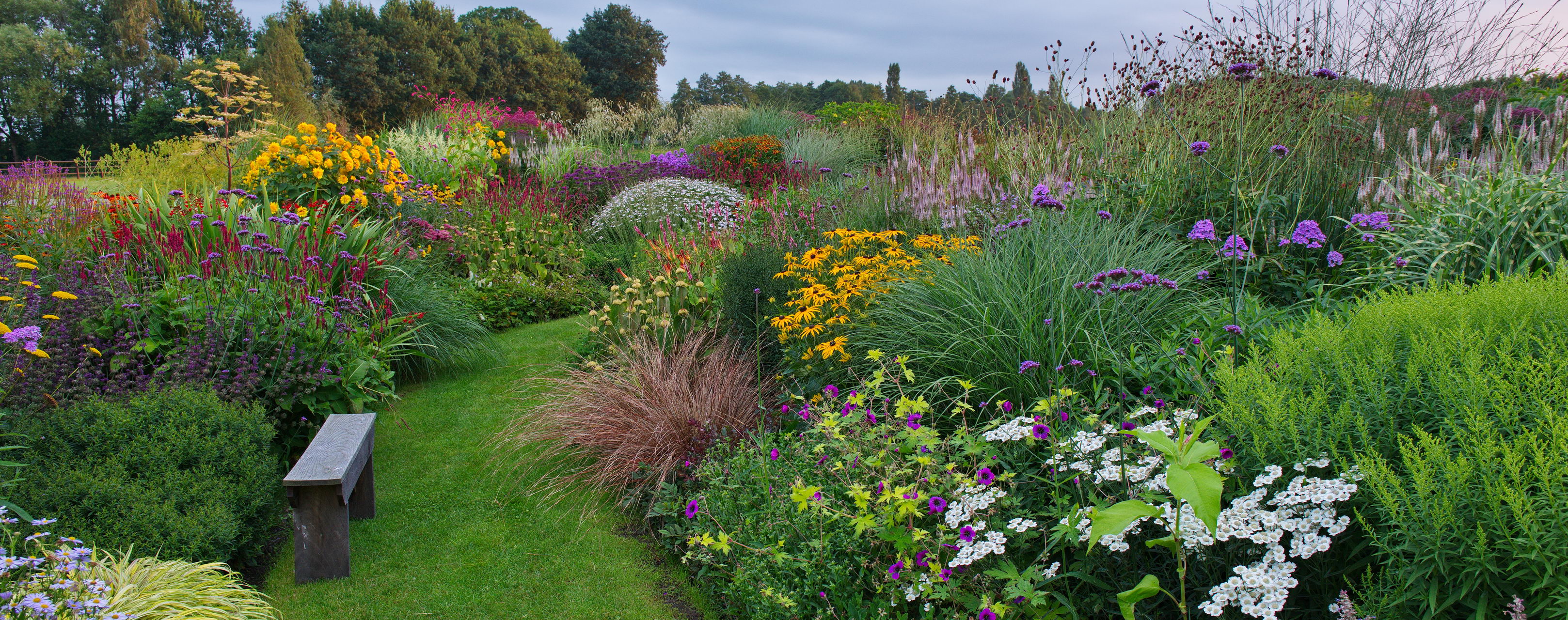 - Gräser, Hakonechloa macra 'Aureloa', Helianthus 'Happy Days', Kalimeris incisa 'Blue Star', Phlox 'Hesperis', Rudbeckia fulgida var. sullivantii 'Goldsturm', Verbena bonariensis, Panorama
