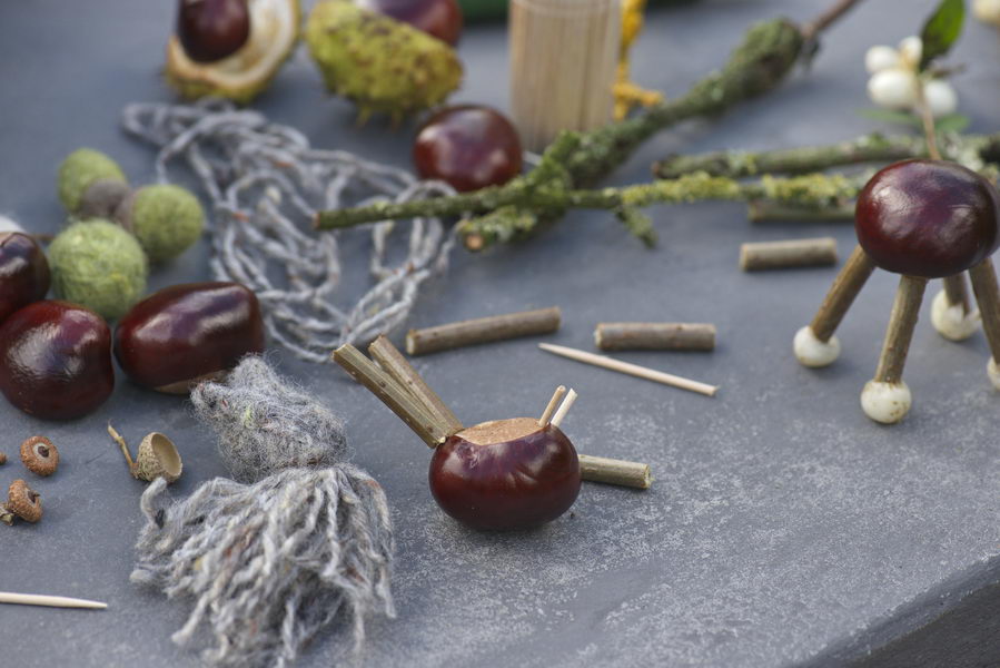basteln, DIY, Herbst, Kastanien, Kastanienpferde, Wolle