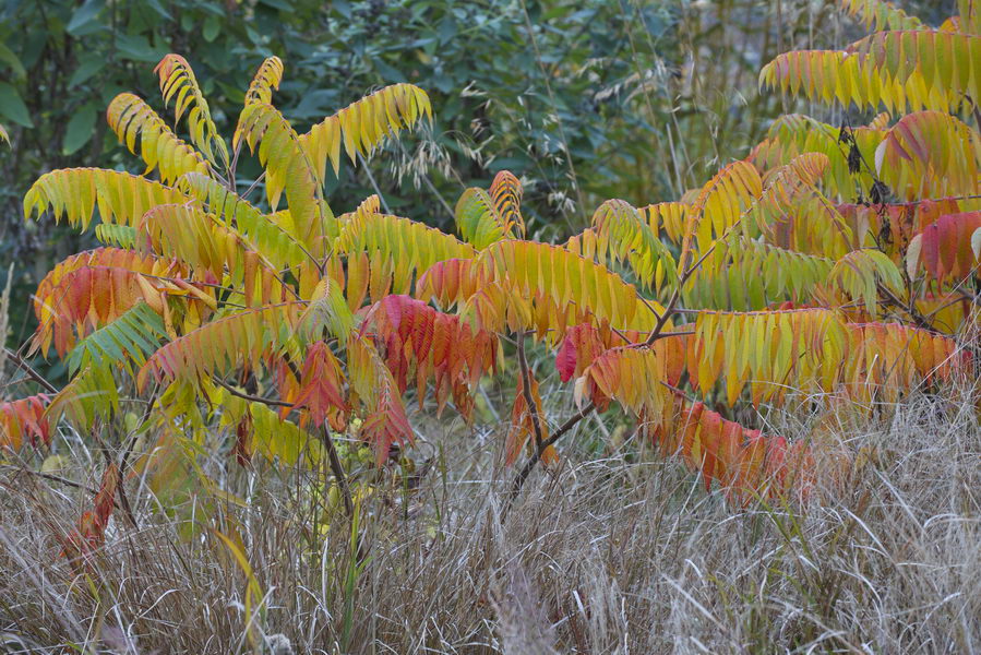 - Essigbaum, Herbstfärbung, Rhus, Calamagrostis brachytricha, Hyde Hall