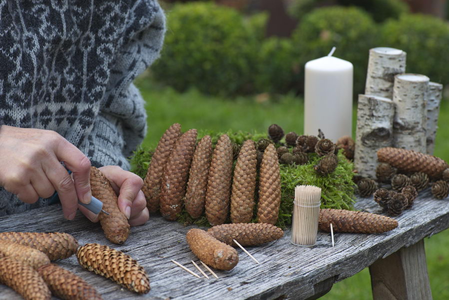 - Advent, Adventskranz, basteln, DIY, Zapfen, Zapfenkranz