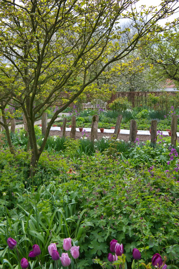 Geranium phaeum, Zaunpfähle, Garten Elisabeth Imig und Silke Imig-Gerold