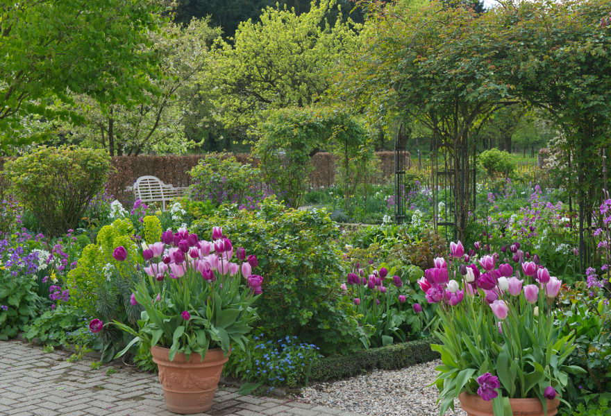 - Garten Elisabeth Imig und Silke Imig-Gerold, Lunaria, Tulpe 'Blue Diamond', Tulpe 'Candy Prince', Tulpe 'Negrita', Tulpe 'Purple Prince', Tulpe 'Shirley', Tulpe 'Synaeda Amor', Tulpe 'Synaeda Blue'