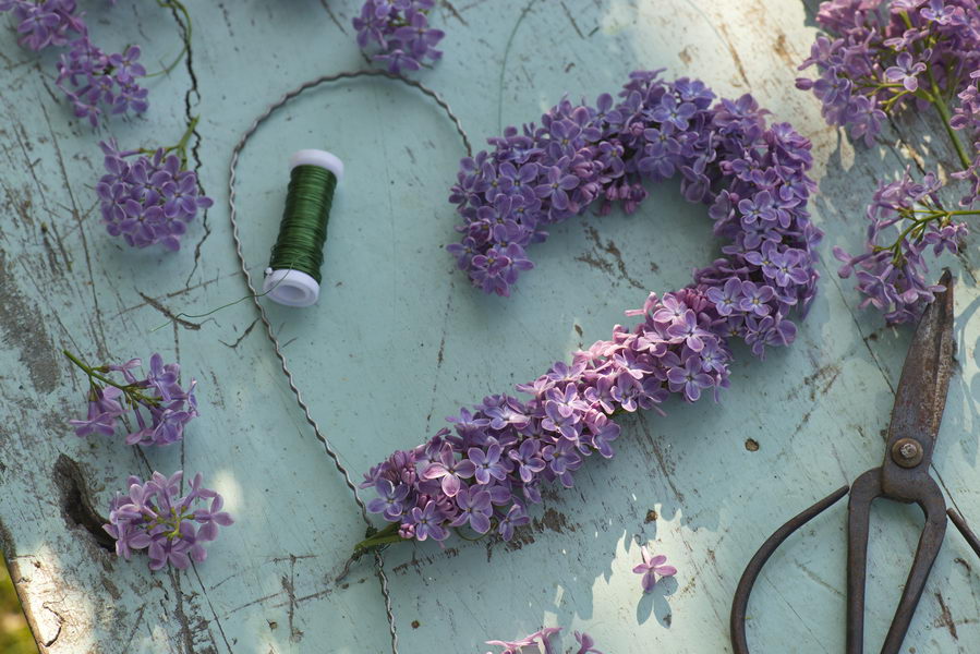 basteln, binden, DIY, Flieder, Fliederherz, Herz