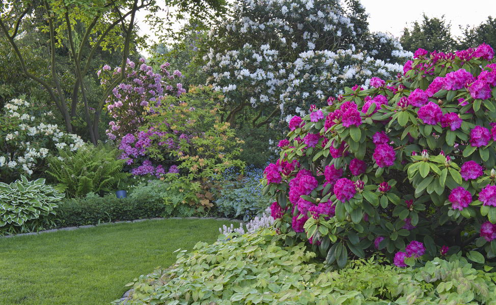 Rhododendron Hybride 'Germania', Rhododendron 'Cunningham's White'