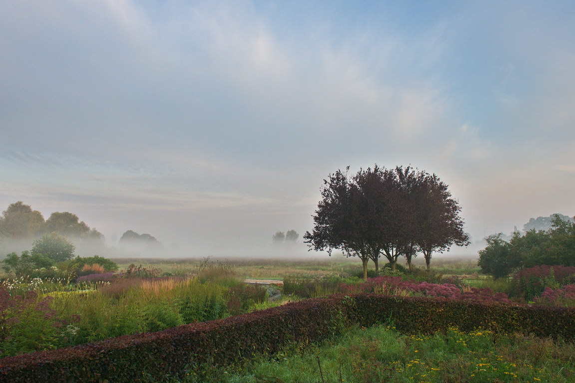 - Blutpflaume 'Nigra', Polygonum amplexicaule, Prunus cerasifera 'Nigra', Präriegarten