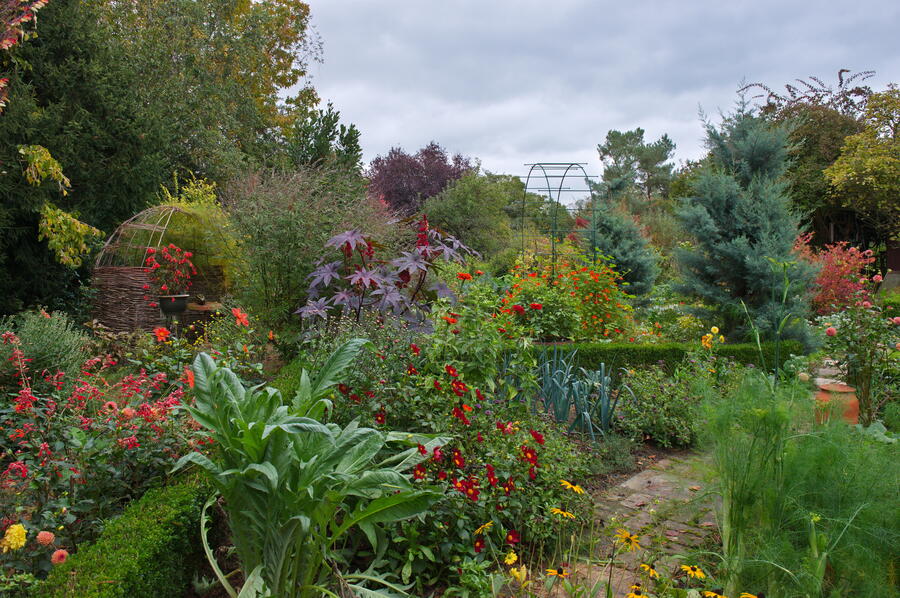 - Dahlia, Gemüsegarten, Porree, Ricinus communis, Tropaeolum majus