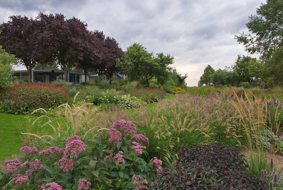 - Blutpflaume, Eupatorium, Pennisetum orientale, Persicaria, Präriegarten, Prunus cerasifera 'Nigra'
