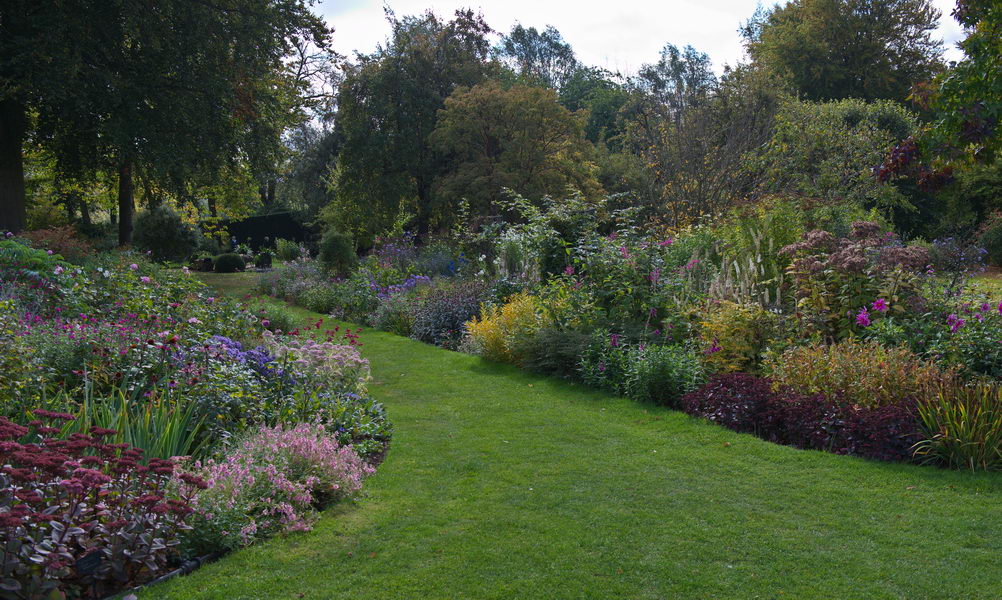 - Aster thomsonii 'Nanus', Border, Coton Manor Gardens, Echinacea, Eupatorium, Ian und Susie Pasley-Tyler, Salvia, Sedum 'Frosty Moon'