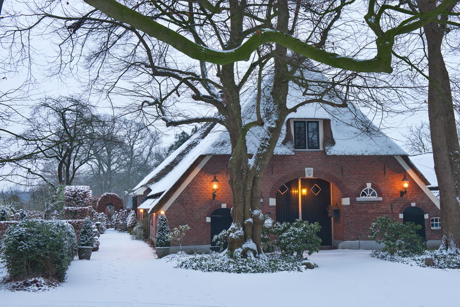 - Bauernhaus, Garten Erve Odinc, Reetdach, Schnee