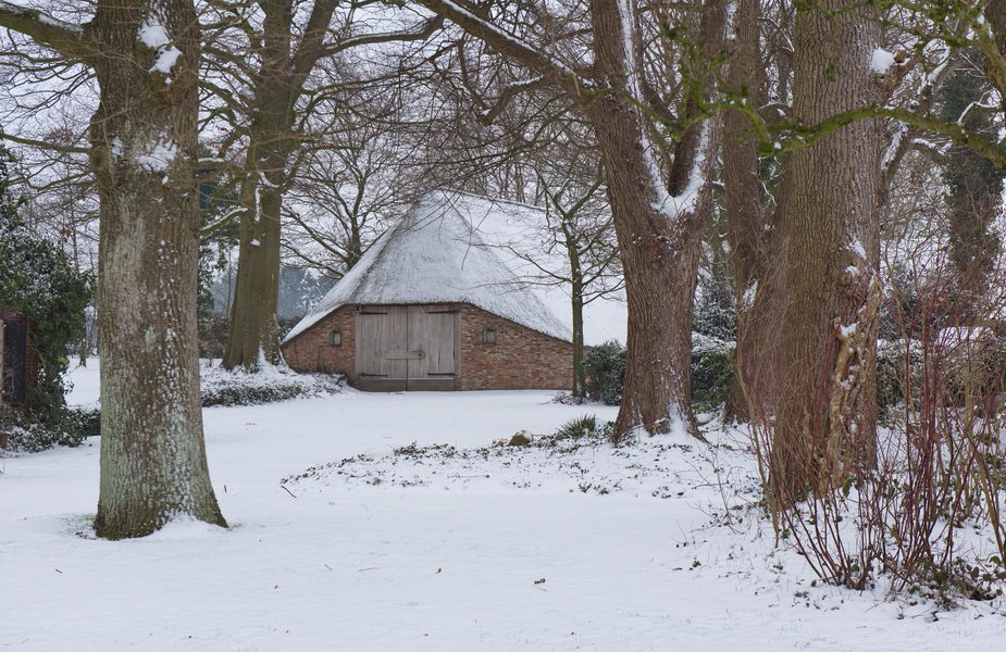 - Garten Erve Odinc, Reetdach, Scheune, Schnee