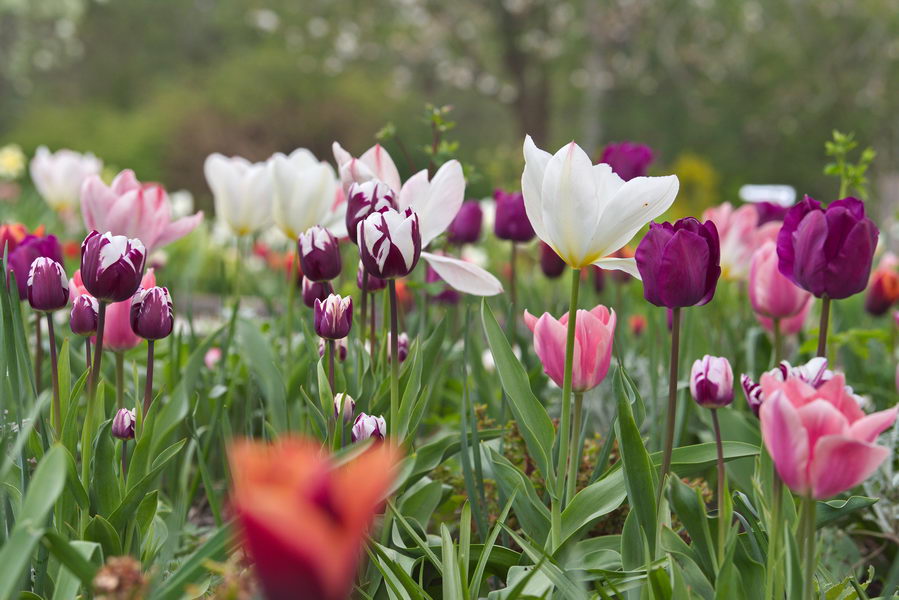 - Garten Verschuur, Tulpe 'Purissima', Tulpe 'Purple Rain', Tulpe 'Rem's Favourite', Garten Les Deesses Vertes