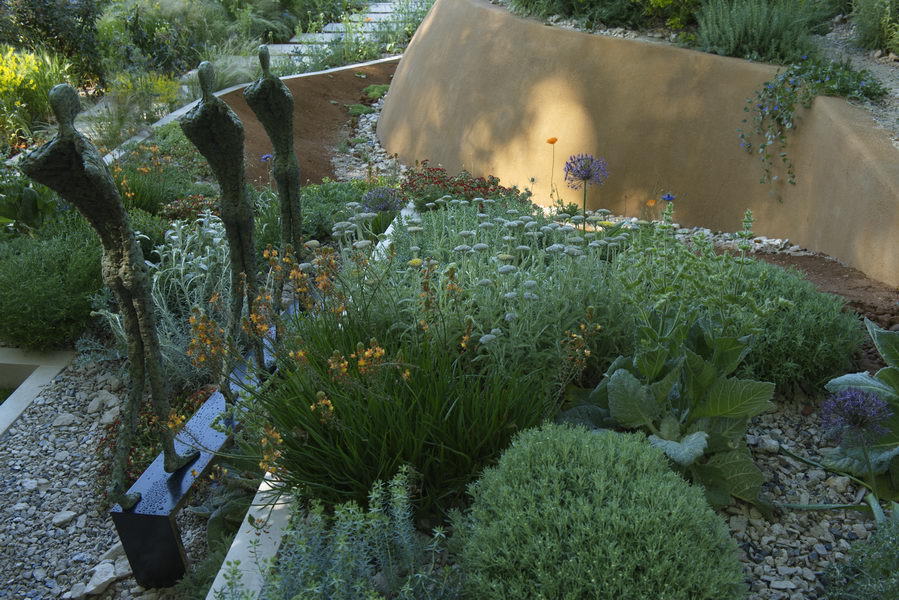- Achillea tomentosa, Bulbine frutescens 'Hallmark', Mauer, mediterran, Chelsea Flower Show