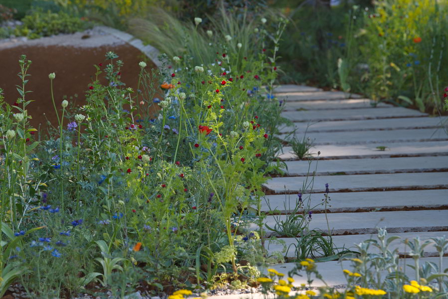 - Adonis annua, Asphodelus albus, Linum narbonense 'Heavenly Blue', Nigella hispanica, Stipa, Chelsea Flower Show