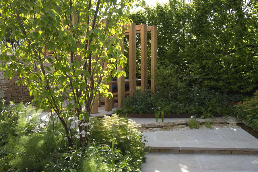 - Magnolia kobus, Valeriana officinalis, kleiner Garten, Chelsea Flower Show