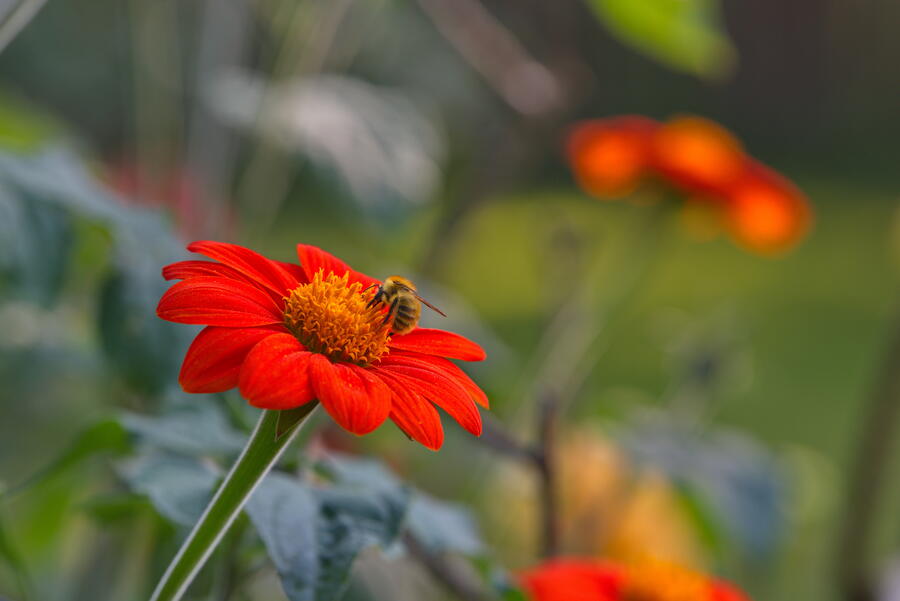 - Biene, Mauerbiene, Tithonia rotundifolia, Wildbiene
