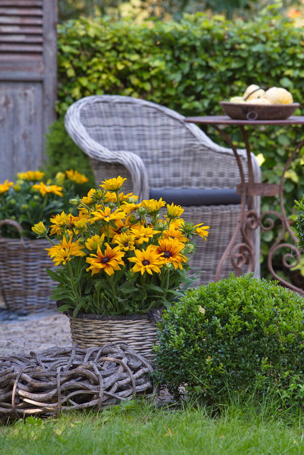 - Rudbeckia hirta, vorne Rudbeckia Sunbeckia® Emelia