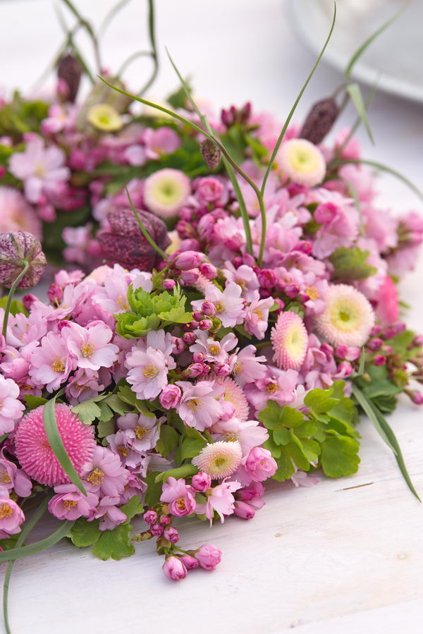 - Bellis, DIY, Fritillaria meleagris, Kranz, Zierkirsche