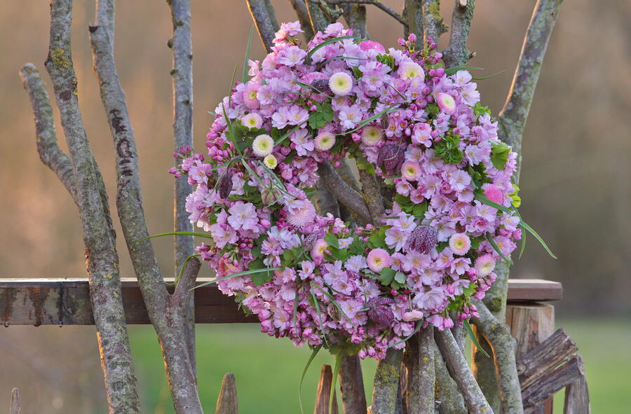 - Bellis, Fritillaria meleagris, Kranz, Zierkirsche