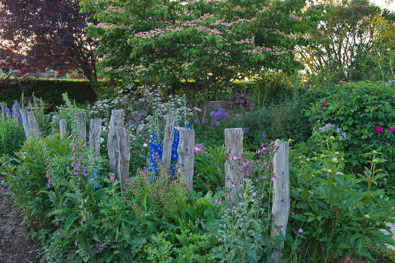 - Acer negundo, Allium, Eschen-Ahorn, Euphorbia characias subsp. wulfenii, Rhododendron, Rhododendron 'Catawbiense Grandiflorum', Panorama