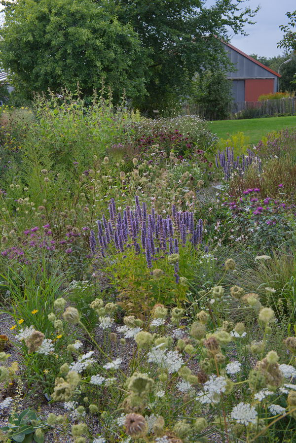 - Agastache rugosa 'Black Adder', Astern, Daucus carota, Echinacea, Gaura lindheimerii, Kalimeris, Kiesgarten, Monarda, Präriebeet, Verbena bonariensis, Verbena hastata
