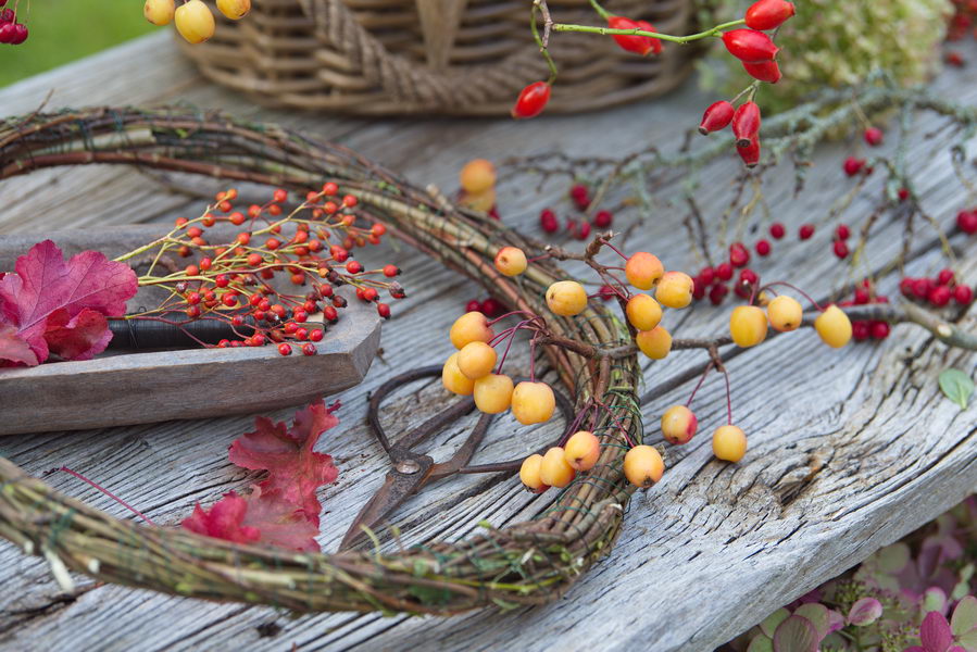 - Beeren, DIY, Hagebutten, Herbst, Zierapfel, Kranz binden