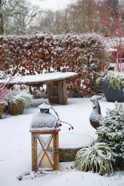Bank, Girlande, Laterne, Schnee, Terrasse, Weihnachtsbaum, Panorama