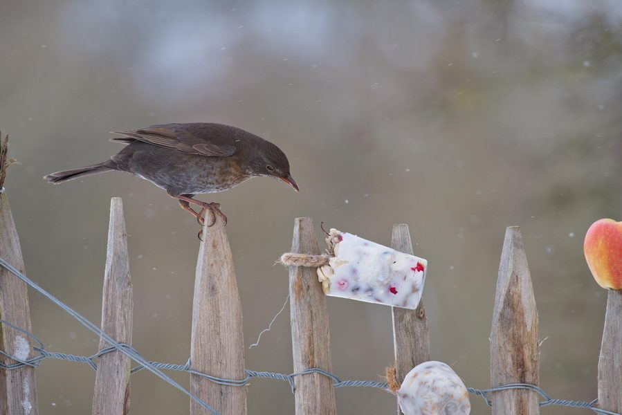 Amsel, Vogelfutter, Schnee