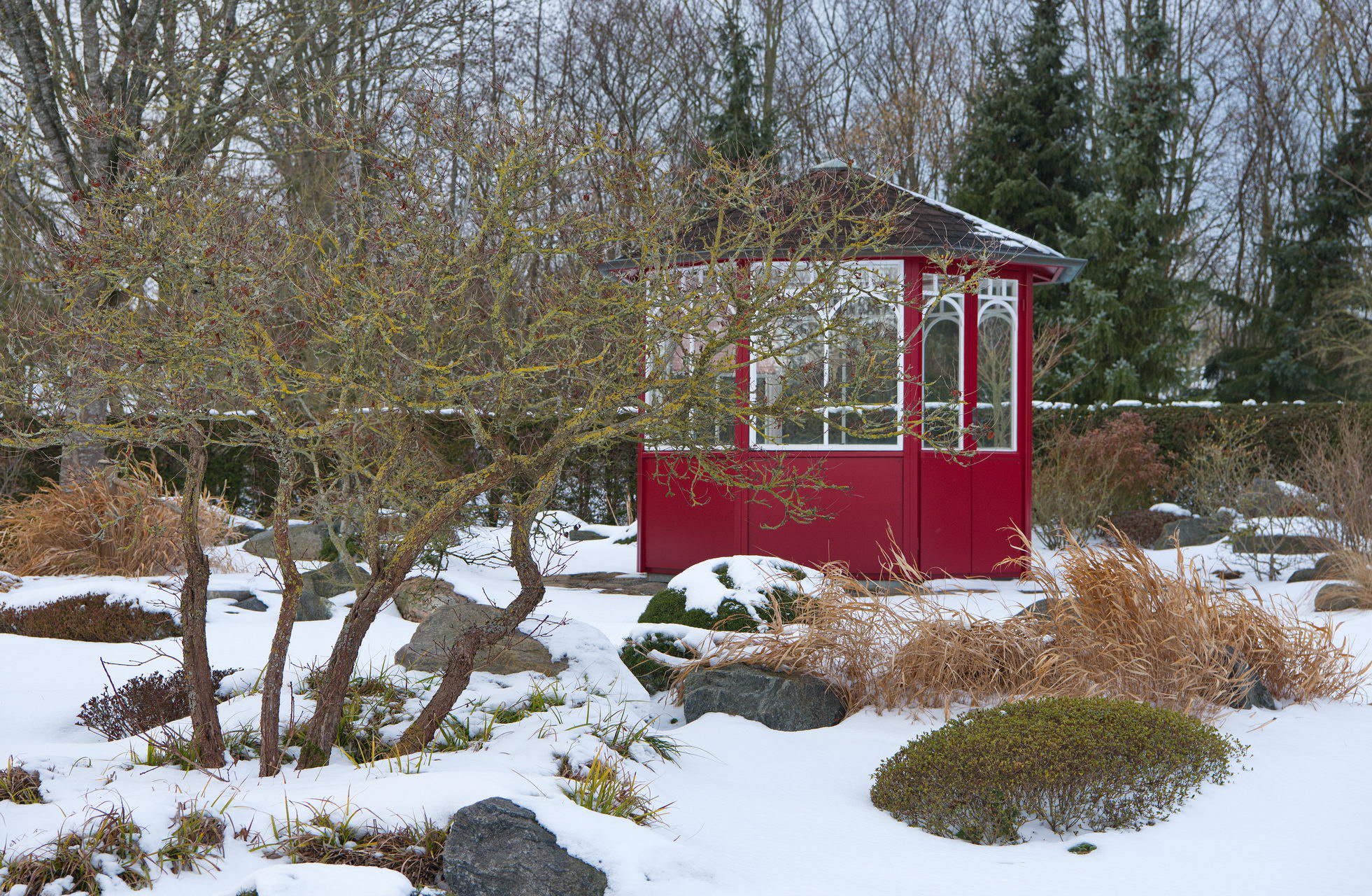 Hakonechloa, Pavillon, Schnee