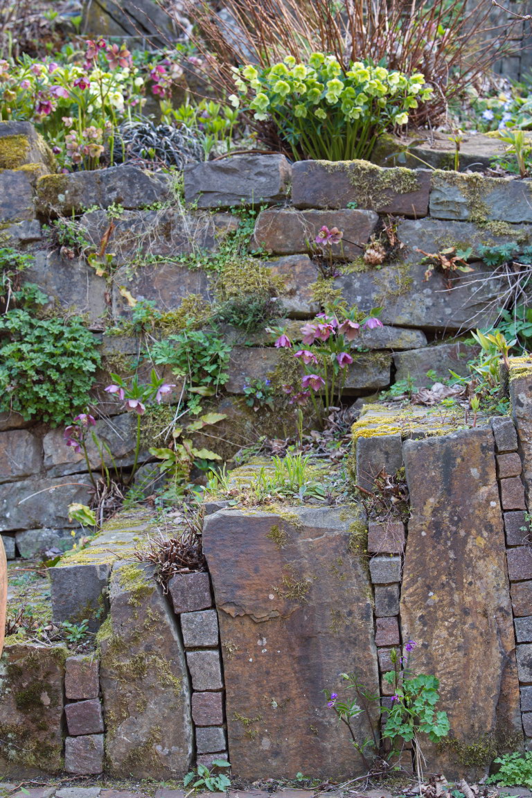 - Bergische Grauwacke, Helleborus, Mauer, Naturstein, Trockenmauer