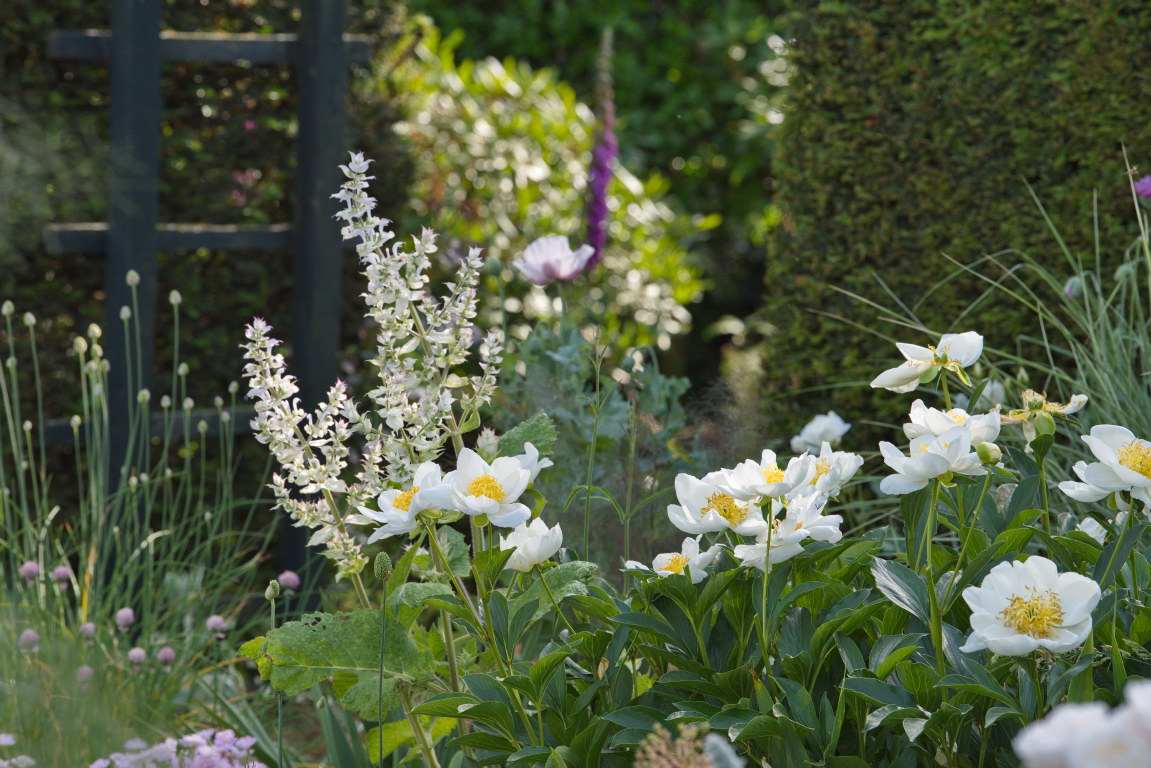 - Paeonia lactiflora 'Jan van Leeuwen', Salvia sclarea