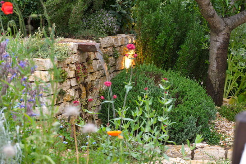 - Naturstein, Trockenmauer, mediterran, Wasser, Chelsea Flower Show