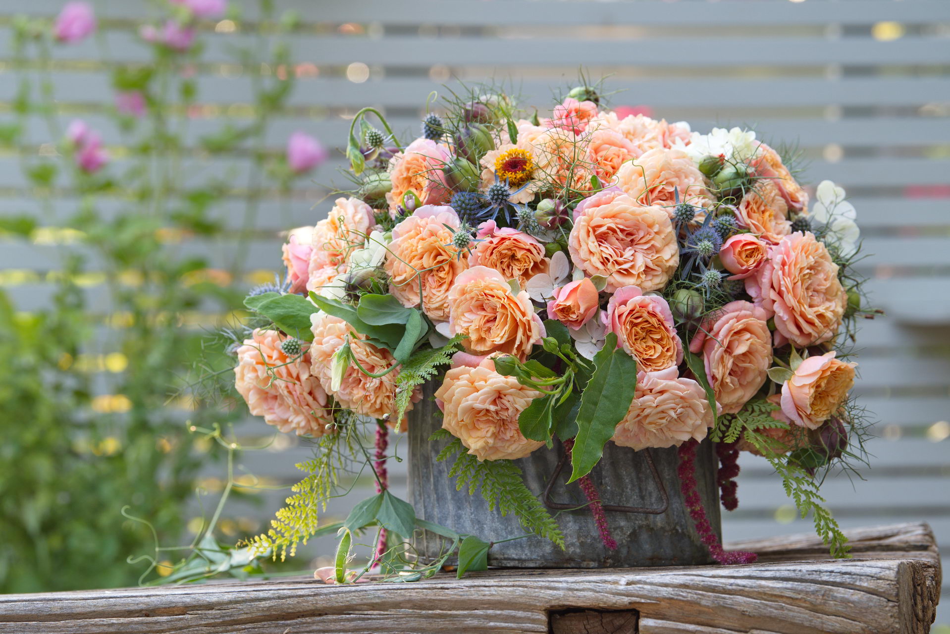 - Kletterrose, Rose 'Peach Melba', Strauß, Zink