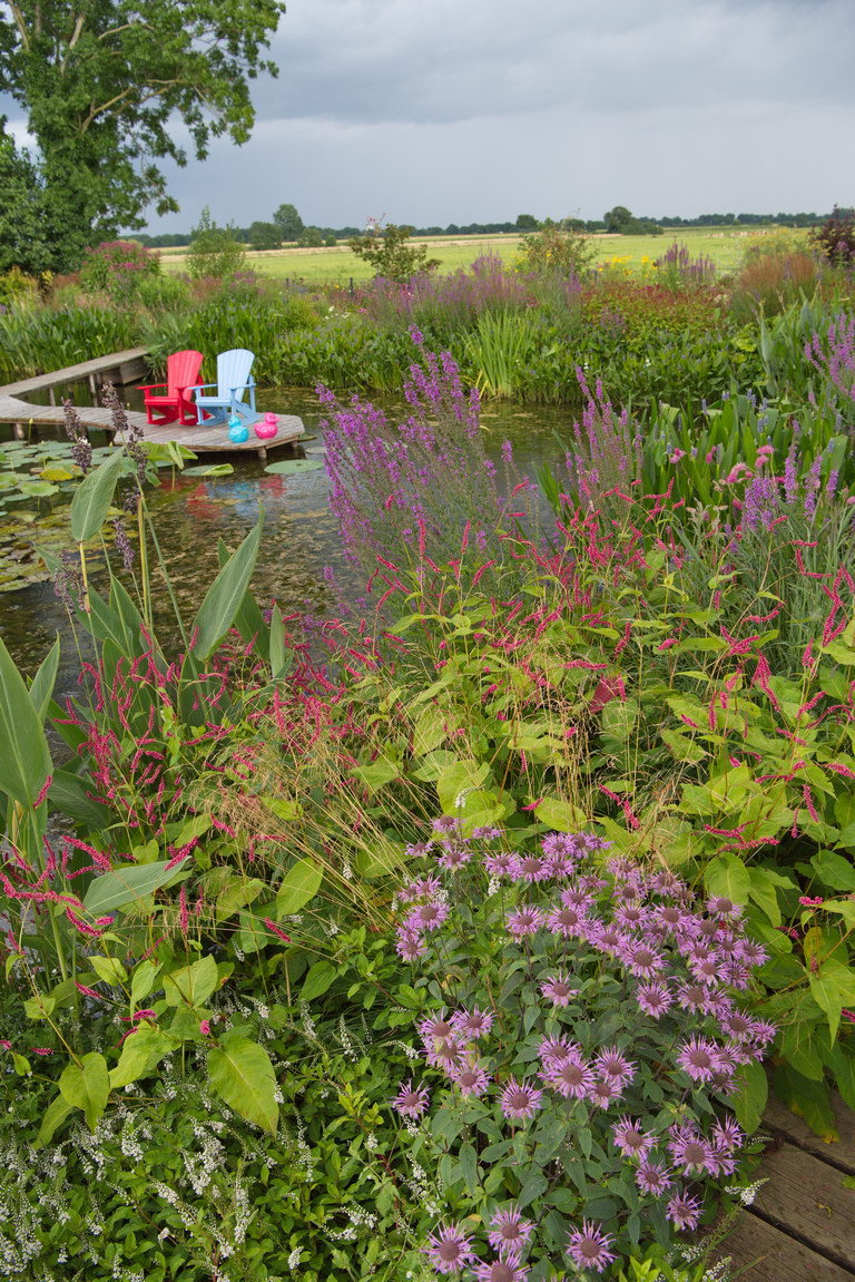 - Lysimachia clethroides, Lythrum, Monarda fistulosa var. menthifolia 'Mohikaner', Polygonum amplexicaule, Steg