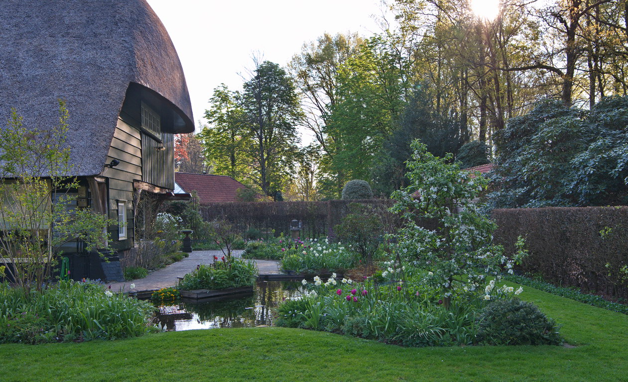 Teich, Malus, Tulpen, Narzissen