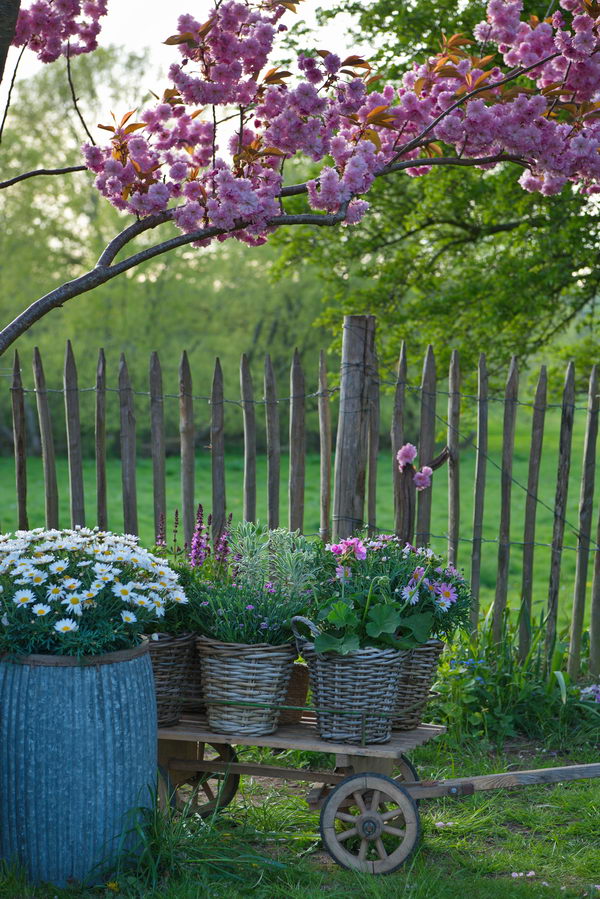 - Bollerwagen, Margerite, Prunus serrula 'Kanzan', Zierkirsche