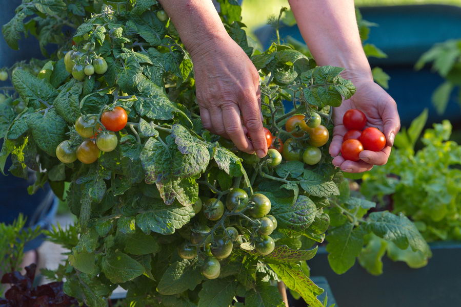 Kübel, Tomate, ernten, Gemüse