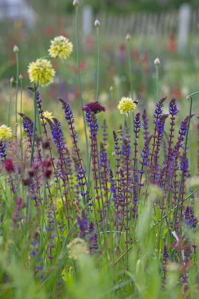 - Allium atropurpureum, Allium obliquum, Präriebeet, Salvia
