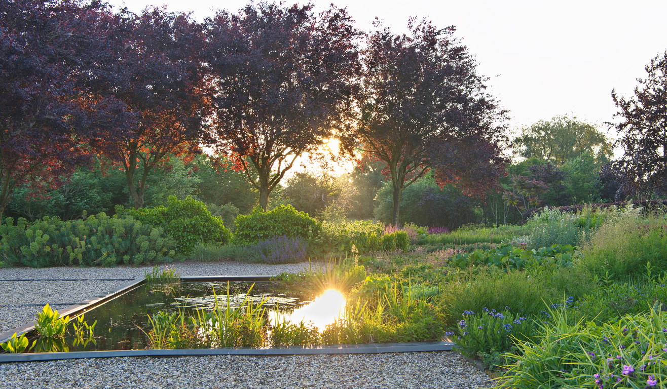 - Amsonia, Bergenia, Blutpflaume, Centaurea pulchra major, Euphorbia characias ssp. wulfenii, Hedera, Phlomis russeliana, Prunus cerasifera 'Nigra', Wasserbecken, Tradescantia, Dreimasterblume