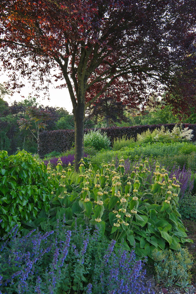 - Blutpflaume, Phlomis russeliana, Prunus cerasifera 'Nigra', Nepeta, salvia