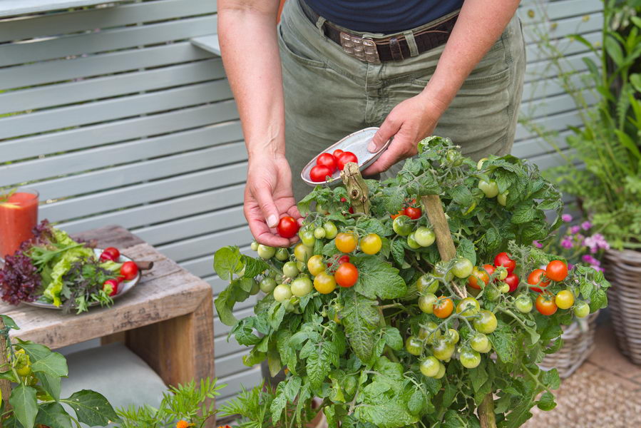 Gemüse, Kübel, Salat, ernten, Tomate