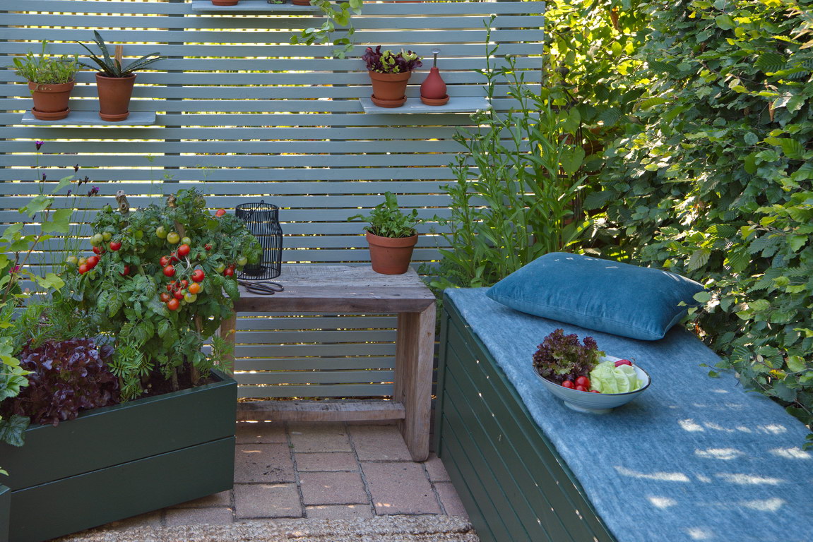- Gemüse, Johannisbeere 'Jonkheer van Tets', Kübel, Salat, Tomate, Kissentruhe