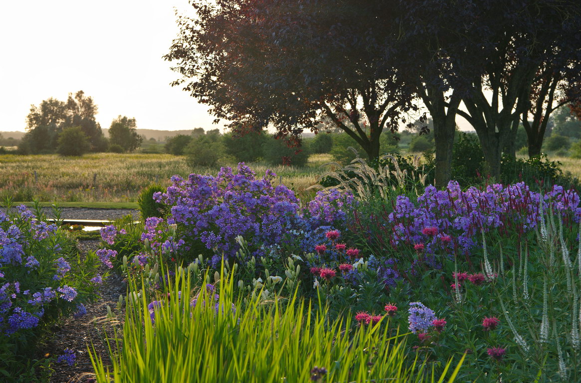 - Blutpflaume, Pennisetum, Phlox paniculata, Prunus cerasifera 'Nigra', Veronicastrum virginicum 'Album', Präriegarten