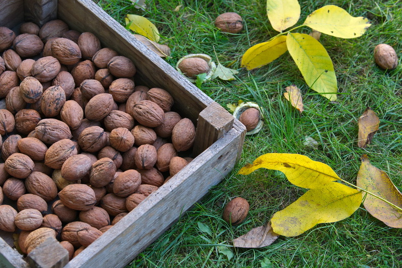 Juglans regia, Walnuss, Ernte