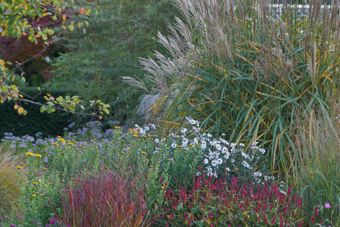 - Miscanthus, Panicum virgatum 'Kurt Bluemel', Aster novi-belgii 'Schneekuppe', Bistorta amplexicaulis 'JS Delgado Macho ®', Chinaschilf, miscanthus sinensis 'Prof. Richard Hansen'