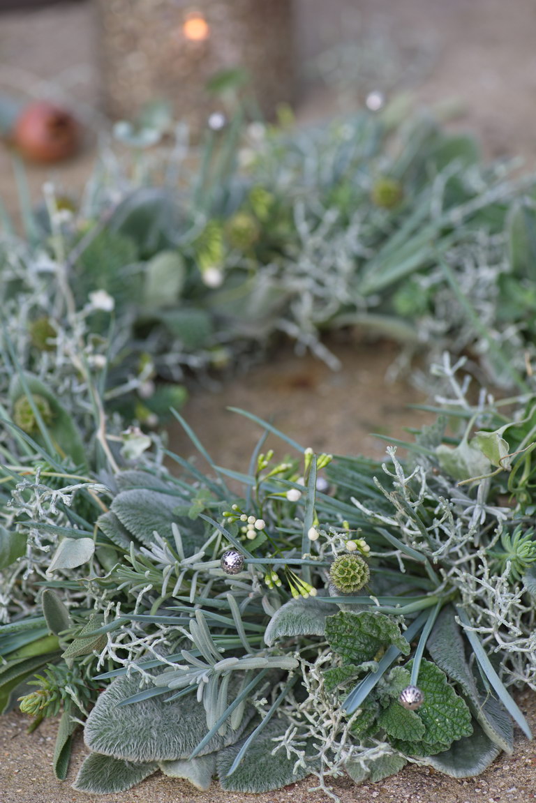 - Calocephalus, DIY, Dianthus, Kranz, Lavendel, Scabiosa ochroleuca, Stachys, binden, grau, silber, Marrubium vulgare