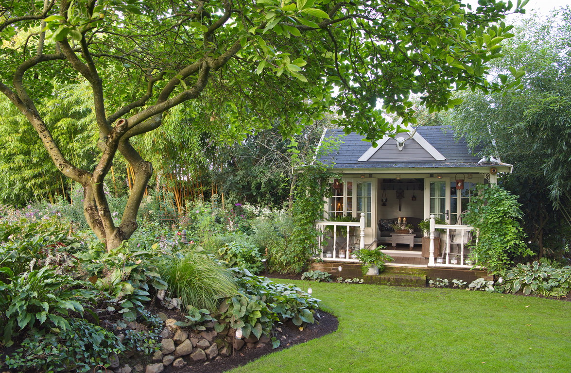 - Blattschmuck, Gartenhaus, Hosta, Magnolia, Schatten