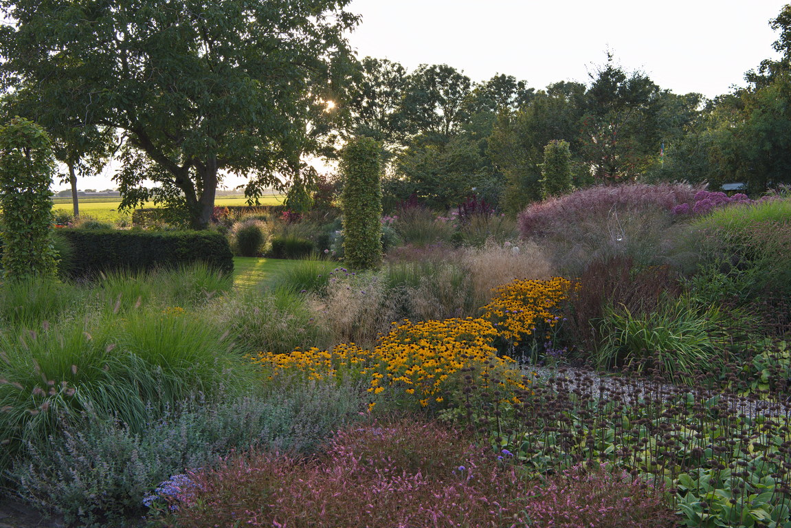 - Bistorta amplexicaulis 'Pink Elephant', Carpinus betulus 'Fastigiata', Deschampsia, Miscanthus, Panicum virgatum 'Heavy Metal', Pennisetum, Rudbeckia fulgida 'Goldsturm', Samenstand, Säule, Säulenhainbuche
