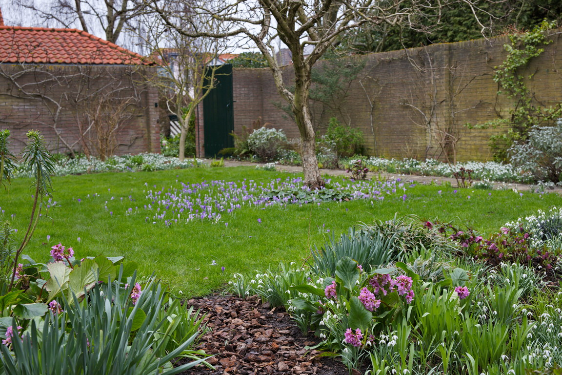 - Bergenia cordifolia, Crocus tommasinianus, Elfenkrokus, Galanthus nivalis, Schneeglöckchen