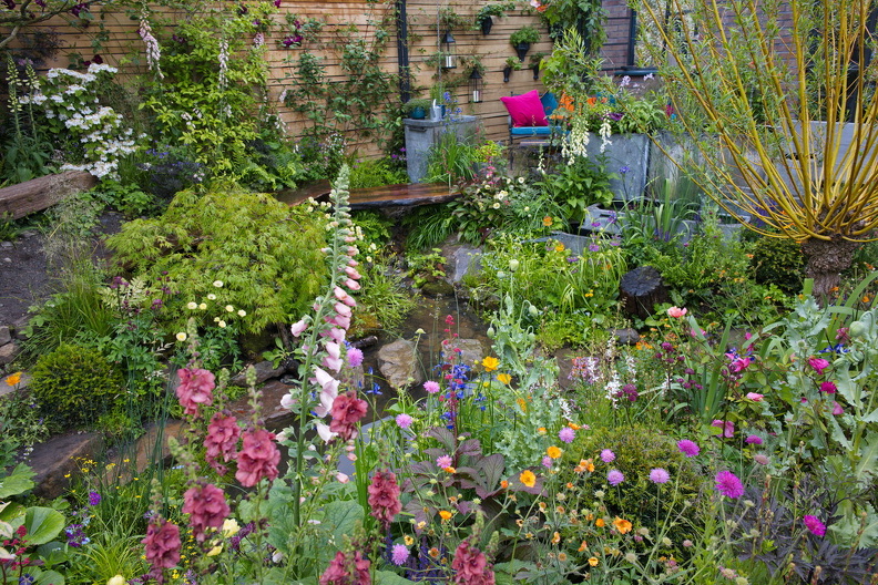 - Brunnen, Sichtschutz, bunt, Schotterbeet