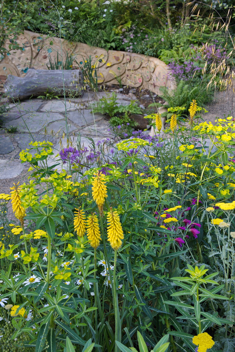 - Euphorbia schillingii, Kniphofia 'Sunningdale Yellow', Thalictrum 'Elin', Naturgarten
